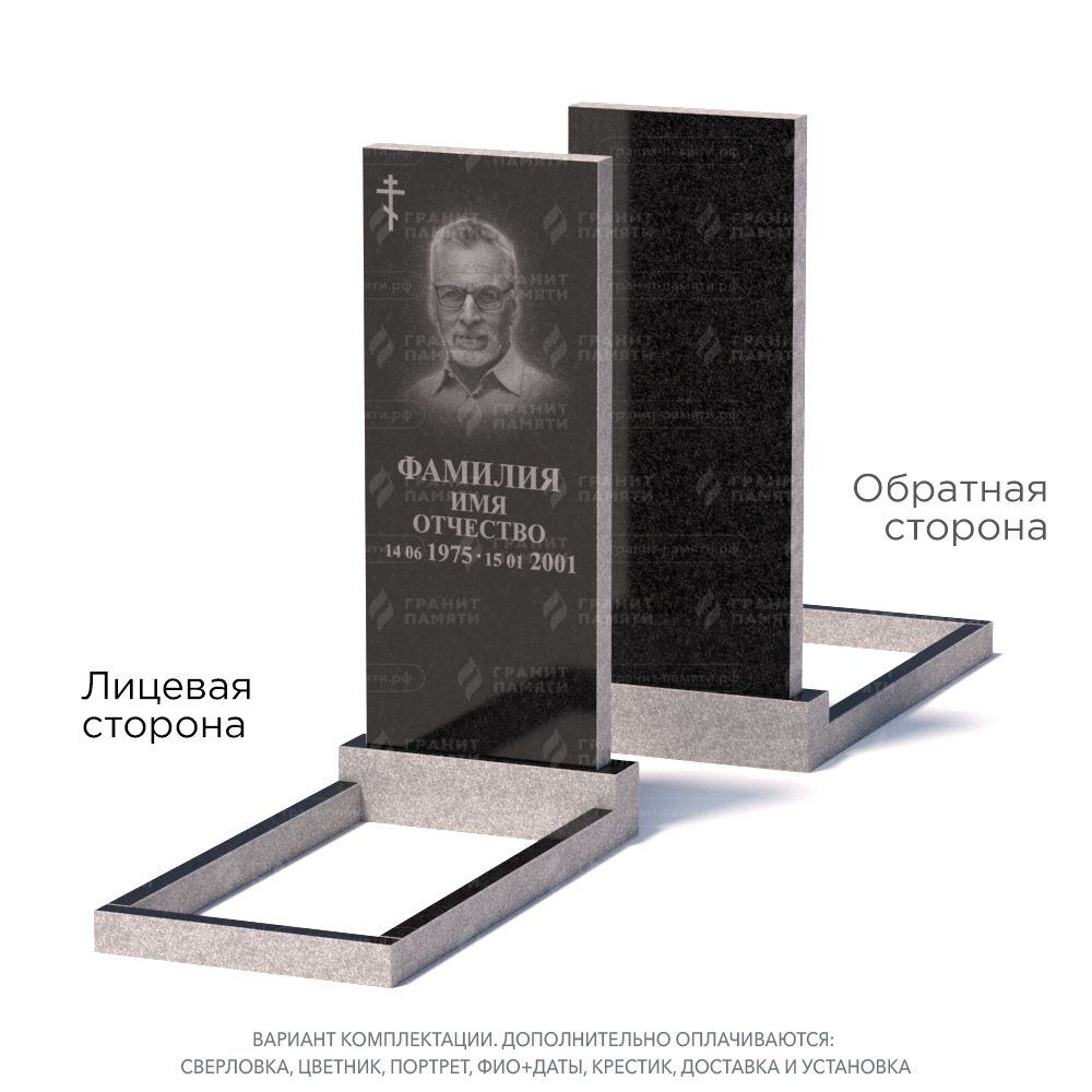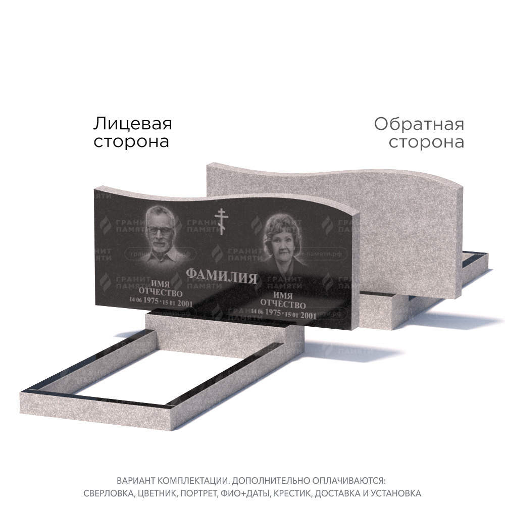 Традиционные формы. Чаще всего недорогие памятники имеют форму четырехугольника. Они могут быть горизонтальными и вертикальными, одинарными и двойными. Также у нас есть бюджетные модели с волнообразными изгибами.